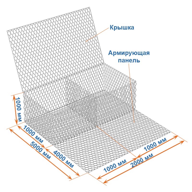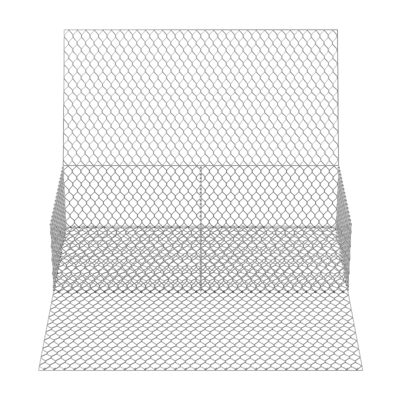 Габион с армирующей панелью 5x2x1 – это габионная конструкция, имеющая форму короба с продленным основанием (армирующей панелью).