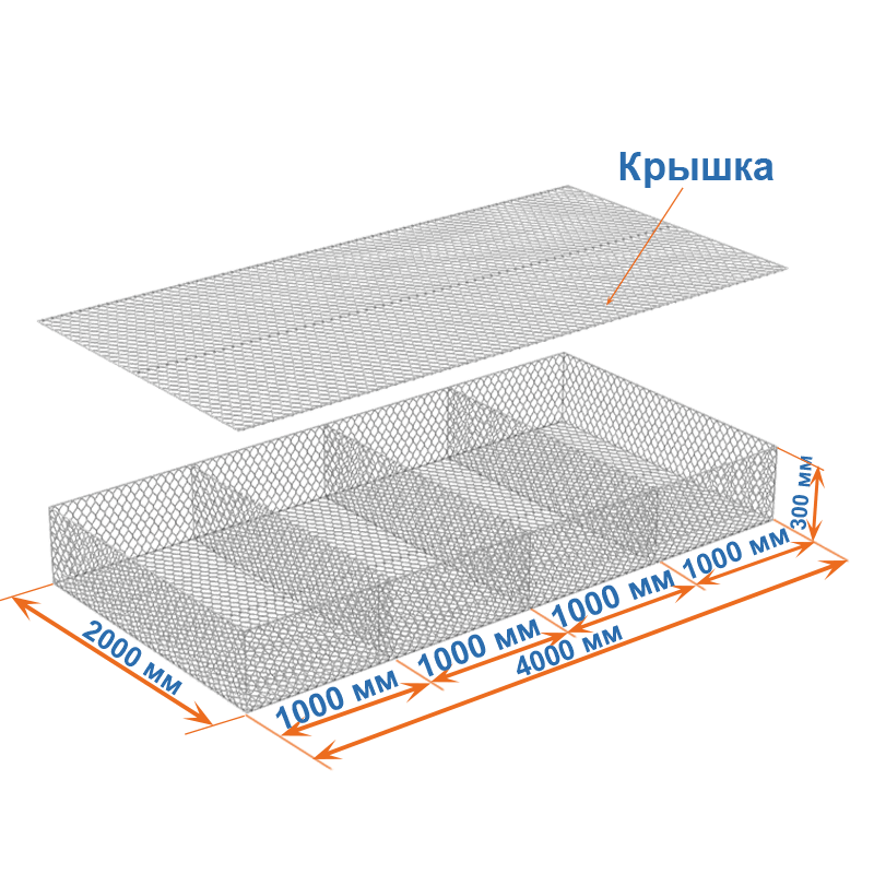 Матрасы Рено 4x2x0,3 (ячейка 60х80, проволока 2,2 мм, покрытие Цинк) применяются для защиты от эрозии.
