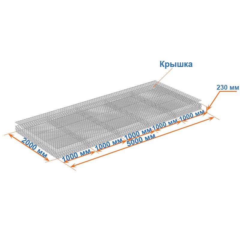 Матрасы Рено 5x2x0,23 — плоские габионные секции из сетки двойного кручения с ячейкой 60х80, проволокой 2,2 мм и покрытием Цинк.