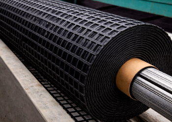 Геосетка – плоская георешетка из полимера. Она имеет ячеистое строение. Размер бокового ребра каждой соты материала составляет 5 – 50 мм. Ячейки создаются эластичными ребрами из высокопрочных пучков нитей. Пучки соединяются друг с другом посредством прошива, плетения, склеивания, сплавления или др. способом.