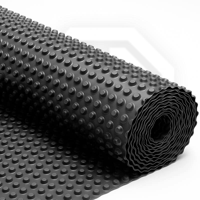 Профилированная мембрана Тефонд Плюс – это материал, с расположенными на нем выступами в виде полусфер. Полосы мембраны соединяются между собой путем наложения друг на друга и герметичного скрепления с использованием битумного герметика.